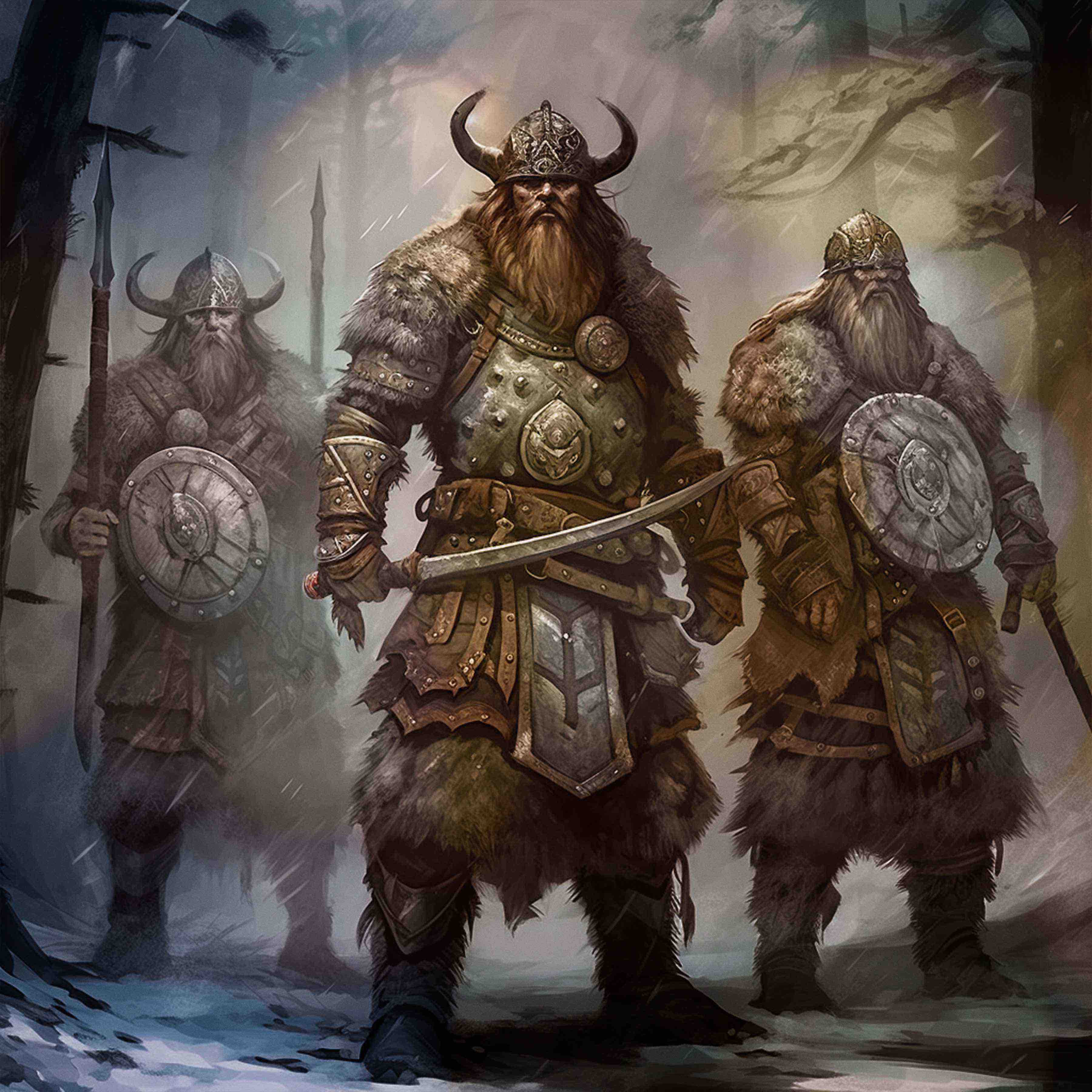 The Dwarven Lords of the Mountains, consisting of the proud Khazdum Dwarves, consider themselves the largest, strongest, and most intelligent among their kin. They have achieved prominence by recognizing the true value of gold and dedicating themselves to its mining, accumulation, and trade. Through their efforts, they have established prosperous trade routes with other peoples, solidifying their economic might. The Dwarven Lords find security in their homeland nestled within the Talking Mountains, whose towering peaks and treacherous terrain provide nearly impenetrable natural defenses. This rugged landscape, coupled with their indomitable spirit, bolsters their resilience and ability to withstand external threats. While the Khazdum Dwarves possess limited magical potential, they make up for it with their resistance to the magical influences of others. Their steadfast nature shields them from the manipulations of magic-wielding adversaries, allowing them to focus on their physical prowess and technological advancements. Renowned as some of the most proficient warriors among the races, the Khazdum stand as formidable defenders of their realm. Their martial expertise, honed over generations, combines brute strength, meticulous tactics, and an unwavering resolve to ensure their enemies are vanquished.