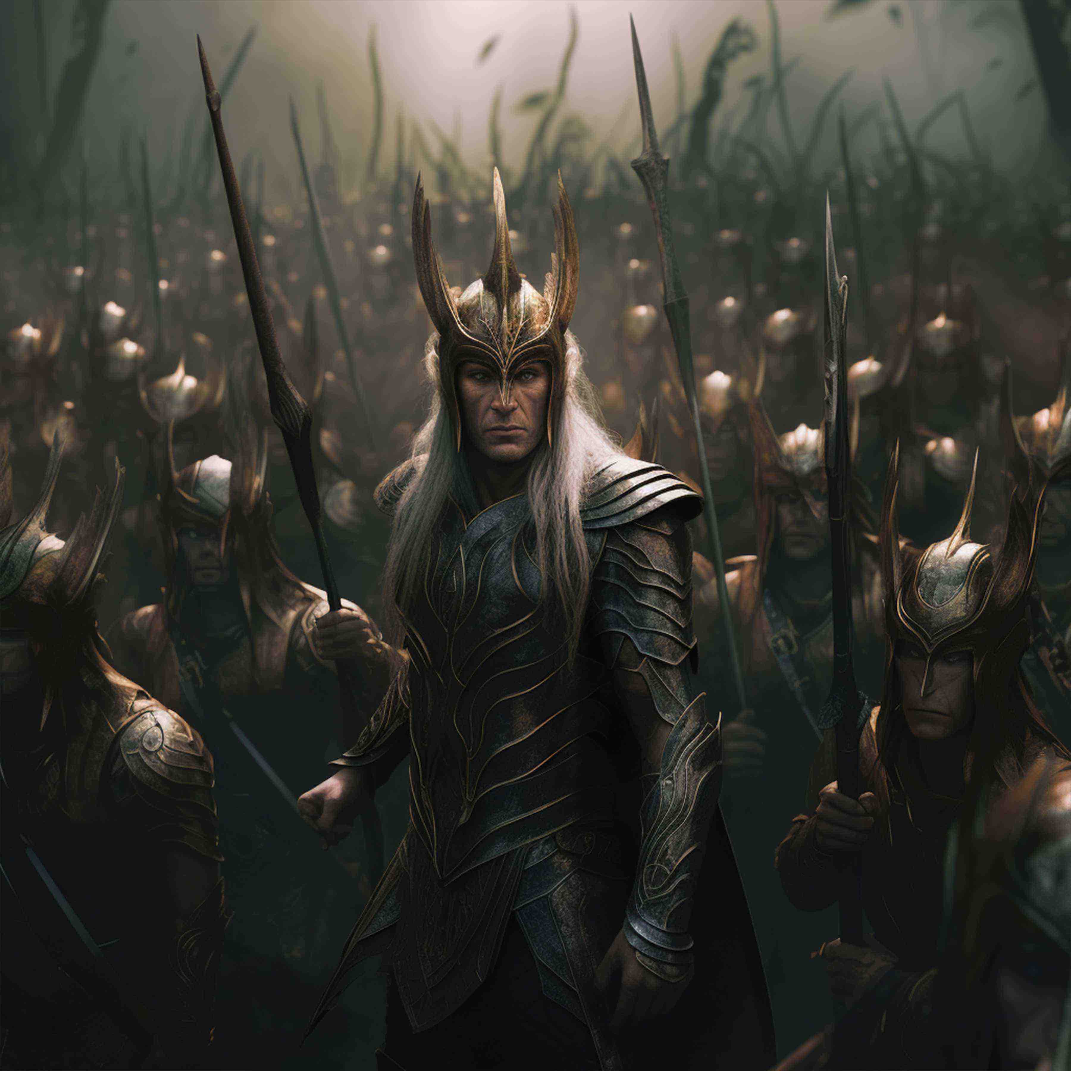 The Evergreen Dominion of the High Elves, also known as the High Elves of the Golden Woods, embody a noble people who hold freedom, honor, and justice as paramount principles. They stand in stark opposition to the Dark Elven Imperium, forging a bitter and long-standing enmity with their dark counterparts. Nestled within the sanctuary of the Golden Woods, the High Elves find solace and protection amidst the verdant canopy. However, the ever-looming threat of breach and intrusion has driven them to become more actively involved in the wider affairs of the world. They understand that standing idle may invite peril, and thus, they take proactive measures to safeguard their realm and extend their influence. The archers of the Evergreen Dominion are renowned throughout the land, their precision and skill unmatched. From the depths of their enchanted woods, they rain down arrows upon their enemies with lethal accuracy, defending their borders and striking fear into the hearts of their adversaries. Mastery of mithril craftsmanship is a hallmark of the High Elves. Their ability to forge and utilize this rare and precious metal grants them formidable equipment that combines exceptional durability with remarkable lightness. Clad in mithril armor and wielding exquisite weapons, they stand as paragons of elven craftsmanship on the battlefield. In times of dire need, the High Elves can call upon their ancient allies, the Giant Eagles, for aid. These majestic creatures, swift and powerful, descend from the skies to fight alongside the High Elves. Their presence serves as a symbol of unity and a fearsome force against any who would threaten the Evergreen Dominion.